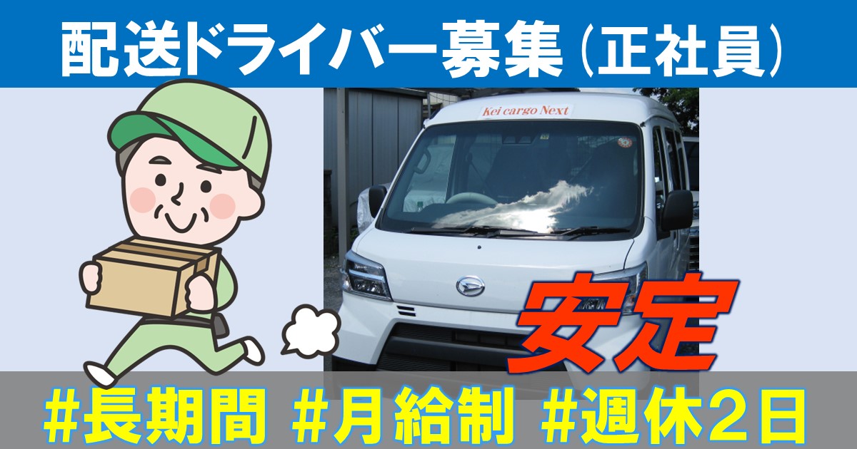 | 勤務時間 | およそ8:00~21:00の間 早めに配送が終われば早上がり可能です |